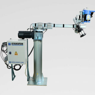 • För att formatera elektroder på stationära svetstänger erbjuder KYOKUTOH en extremt flexibel svängbar lösning. Elektrodformeraren är monterad på svängbar enhet och kan styras mycket flexibelt till den stationerade svetstången.