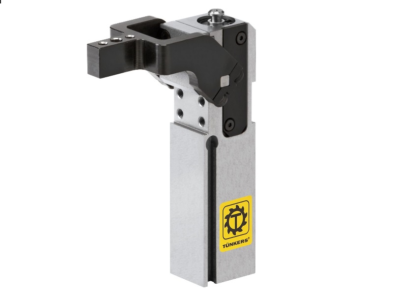 Compact Clamp with knee-lever mechanism, totally enclosed, size 16-25. Over-center locking, monoblock housing made from high-strength material. Integrated pneumatic cylinder Ø16-25 mm. Clamp arm with mounting for gripper jaws, contour blocks or clamping screws. Mounting hole patterns front and rear. Option: Magnetic switch for opened and closed position.